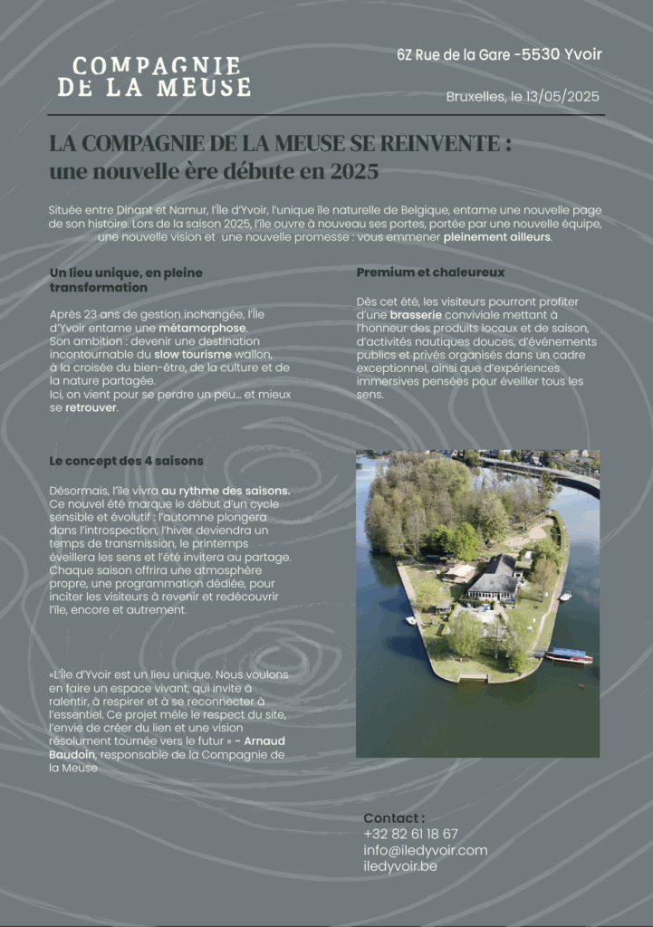Dans le cadre du projet final de notre master 1, nous avons imaginé et développé une campagne de communication complète, du concept à la mise en œuvre, pour revaloriser l’Île d’Yvoir, la seule île naturelle de Belgique.